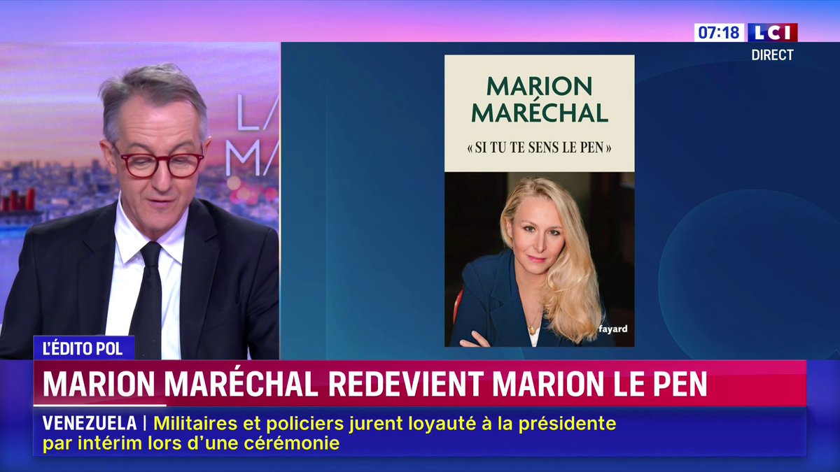 Au début de la guerre de 1914, dans les offensives, les officiers suivaient la troupe révolver au poing pour abattre les fuyards : en choisissant de veiller sur l’héritage de Jean-Marie #Marion aura ce rôle auprès du soldat Bardella. Avanti !LCI (@LCI)▶️ Marion Maréchal redevient Marion Le Pen