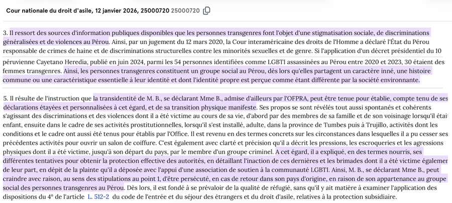 Bienvenue aux transgenres péruviens qui vont venir nous enrichir. L’État de droit c’est la nef des fous. Le conseil d’État qui parraine la #CNDA est une émanation complétement hors sol de la bourgeoisie parisienneFdesouche.com est une revue de presse (@F_Desouche)La CNDA reconnaît les transgenres péruviens comme groupe social protégé par l’asile