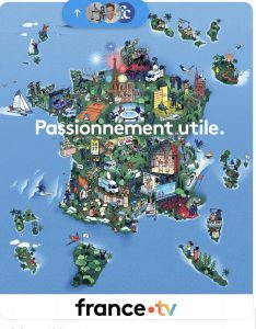 Dessin d’autodéfense de France TV qui résumer bien sa stratégie, notamment pour ses fictions : s’adosser sur les terroirs et la beauté des paysages français pour imposer la doxa diversitaire et le politiquement correct grâce aux milliards des contribuables