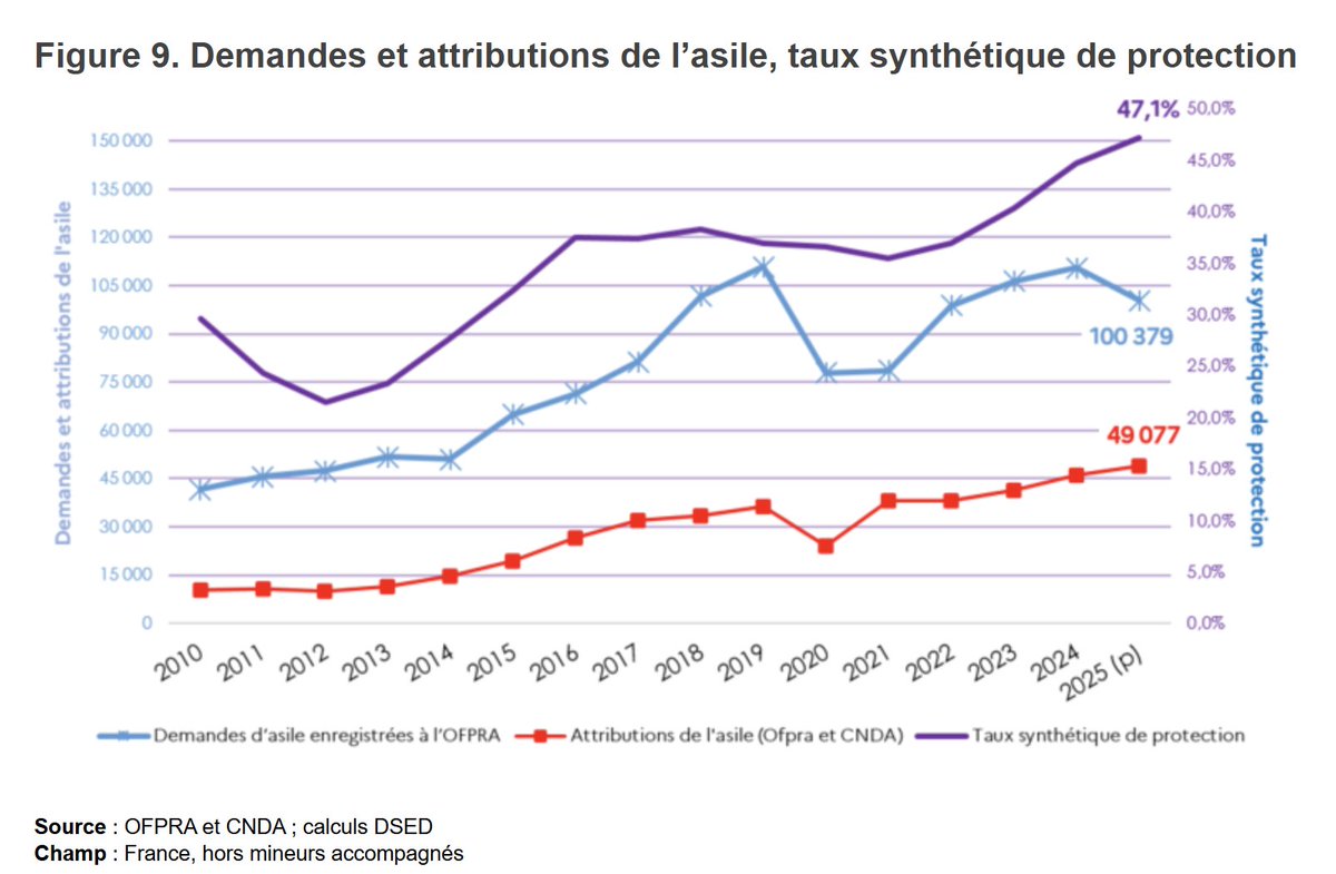 Intéressez vous au Conseil d’Etat et à la CNDA ( cour nationale du droit d’asile). C’est la nef des fous. Ils ouvrent des droits nouveaux à des ressortissants du monde entier sans jamais prendre en compte les conséquences. #JUGEXITFdesouche.com est une revue de presse (@F_Desouche)Record battu : La France n’a jamais autant accordé l’asile qu’en 2025