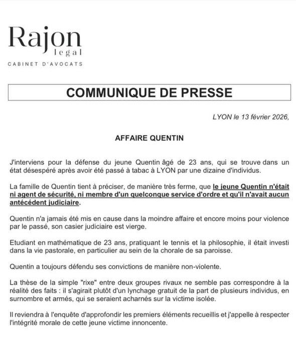 Communiqué de presse de la famille de Quentin pic.twitter.com/w8SpxkjG5Z