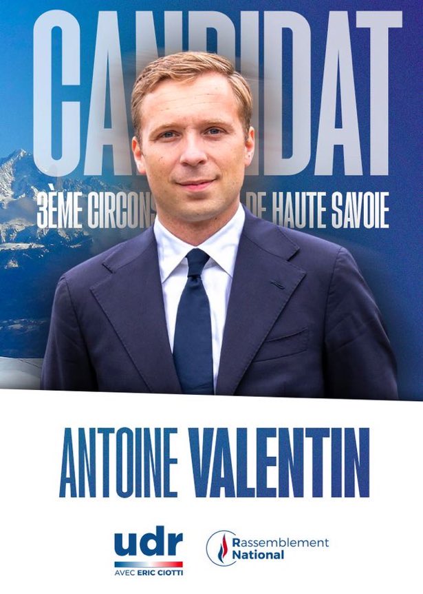 RT by @jylgallou: COUP DE TONNERRE en Haute-Savoie ce dimanche⚡️💥 Résultats définitifs du 1er tour de la législative partielle (3e circonscription) : ✅ A. Valentin (UDR-RN) : 45,06 % ✅ C. Fournier (LR) : 15,23 % ▪️ A. Penhouët (PS-PP) : 13,46 % ▪️ B. Avouac (DIV) : 7,75 % ▪️ N. Gavoille (LFI)… pic.