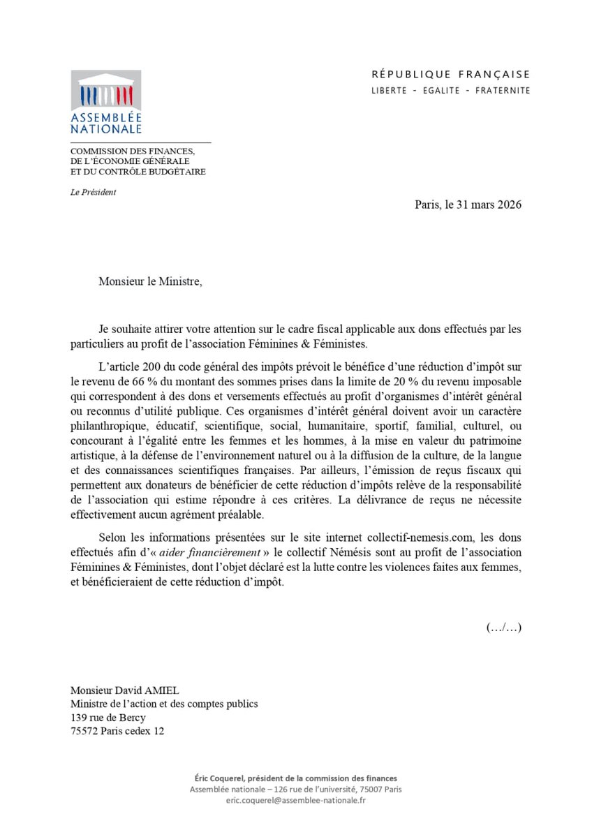 Je profite de l’attaque particulièrement malvenue d’Éric Coquerel contre Némésis, appelant à une enquête fiscale, pour revenir sur une question qui suscite beaucoup d’intérêt : celle des reçus fiscaux.