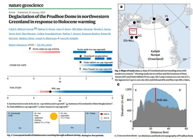 RT by @jylgallou: selon une étude publiée dans Nature, Il y a 6 000 à 8 000 ans, le #Groenland était de 3 à 7 °C plus chaud et moins couvert de glace qu’aujourd’hui. Une grande partie de la calotte glaciaire du Groenlandn’existait pas au début et au milieu de l’Holocène. pic.